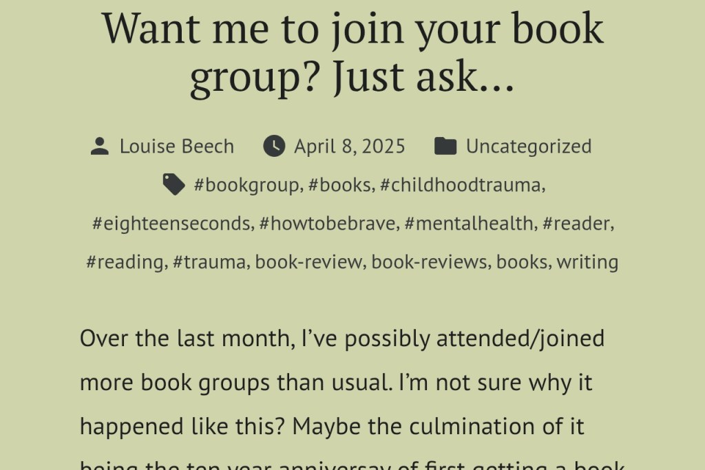 This is a lovely post from author Louise Beech on attending book groups, including a mention to our Yorkshire Reads meet in Beverley in March. Read my own post about that here. It was a great day!